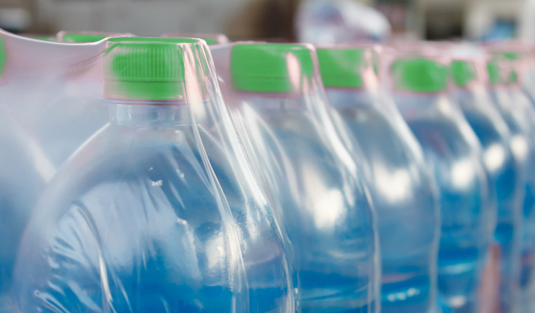 Bundle wrapping is sometimes referred to as "bull's-eye wrapping" because of the opening on both ends of the finished package. Your product can be packaged with or without a tray or pad in multiple variations (4-packs, 6-packs, 24-packs, etc.). Typical applications include trays of soda, water, and canned goods.